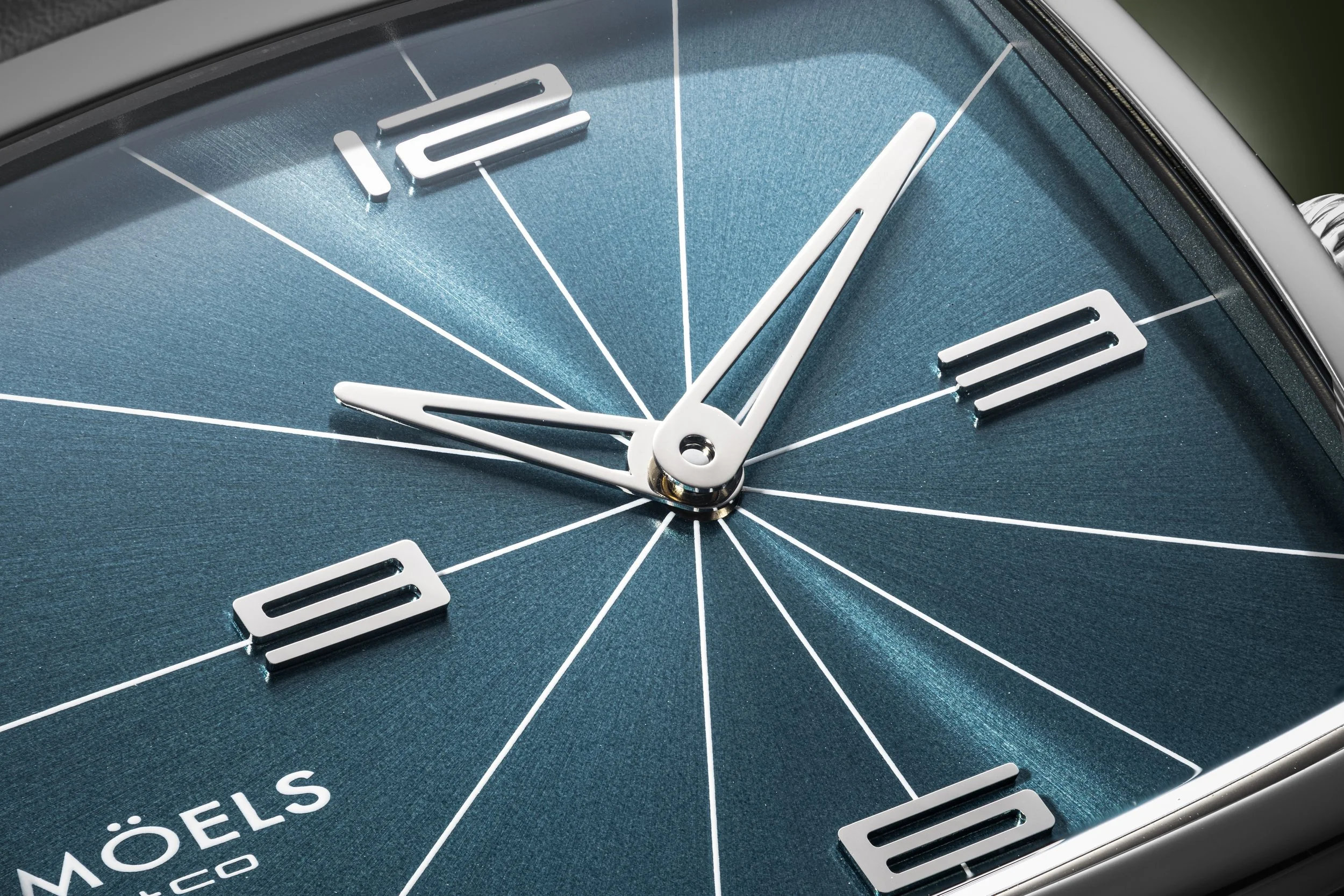 Customers will be able to choose either a premium Epsom leather strap, available in black, brown and blue, or a white CTS (cut-to-size) FKM rubber strap with a Leaf-Spring Deployant clasp, which can be easily trimmed for a precise fit. All straps will be embossed with “Delugs for Möels” on the underside. For those who prefer a metal option, a German-made mesh band from Staib will also be available as an add-on.